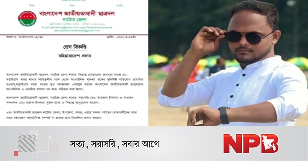 রোববার রাতে জেলা ছাত্রদলের দপ্তর সম্পাদক আসিফ ইকবালের স্বাক্ষরিত বিজ্ঞপ্তিতে তার সাংগঠনিক ও প্রাথমিক সদস্যপদ বাতিলের ঘোষণা করা হয়।