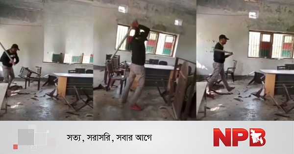 বৃহস্পতিবার (১৩ নভেম্বর) সকালে ছাত্রদল নেতা পিরোজপুরের সরকারি সোহরাওয়ার্দী কলেজের অফিস কক্ষে ঢুকে আসবাবপত্র ভাঙচুর করে এবং আরেকজন মোবাইল ফোনে তা ভিডিও ধারণ করে।