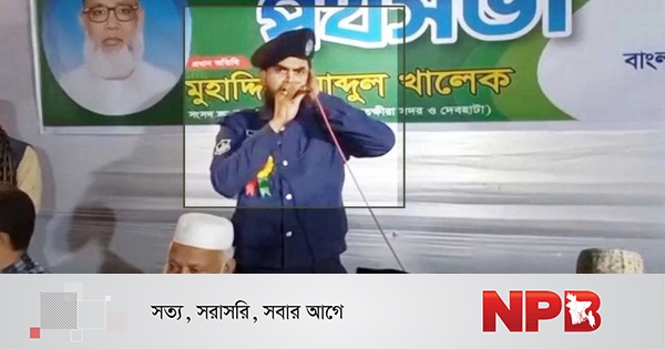 সামাজিক যোগাযোগমাধ্যমে ছড়িয়ে পড়া ভিডিওতে দেখা যায়, সাতক্ষীরা-দেবহাটা সদর-২ আসনে জামায়াতে ইসলামীর মনোনীত প্রার্থী মুহাদ্দিস আব্দুল খালেকের একটি নির্বাচনি পথসভায় পুলিশের পোশাক পরিহিত অবস্থায় ওই পুলিশ সদস্য জামায়াতের স্লোগান সংবলিত একটি গান পরিবেশন করছেন।