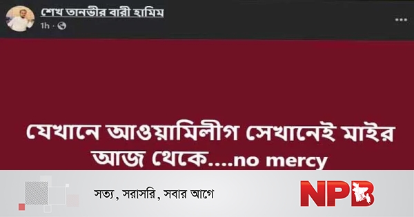 মঙ্গলবার (২৩ সেপ্টেম্বর) সকালে দেওয়া পোস্টে তিনি লিখেছেন, যেখানে আওয়ামী লীগ সেখানেই মাইর আজ থেকে….no mercy।