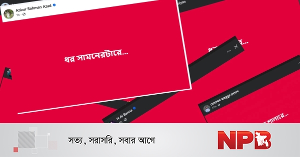 মঙ্গলবার (৩ জানুয়ারি ) সন্ধ্যা ৭টার দিকে ছাত্রশিবিরের কেন্দ্রীয় নেতা আজিজুর রহমান আজাদ ‘ধর শালারে’ ক্যাপশন দিয়ে ফেসবুকে পোস্টে লিখেছেন ধর শালারে কনটেক্স-এর বিস্তারিত এই পেজে পাওয়া যাবে। চোখ রাখুন—https://www.facebook.com/share/1Af3ZABoRj/