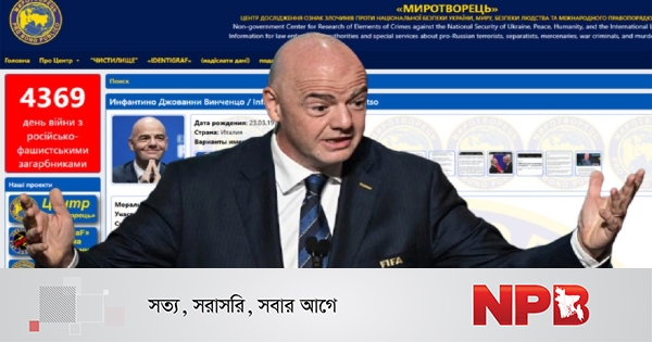 আরটি এক প্রতিবেদনে বলা হয়, ফিফা সভাপতি জিয়ান্নি ইনফান্তিনোকে ইউক্রেনের রাষ্ট্রসমর্থিত মিরোটভোরেৎস ওয়েবসাইটের তথাকথিত ‘হত্যার তালিকা’-তে অন্তর্ভুক্ত করা হয়েছে।