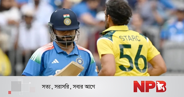 ইনিংসের শুরুতেই রোহিত শর্মা মাত্র ৮ রানে স্লিপে ক্যাচ দিয়ে ফিরলে চাপ বাড়ে। কিছুক্ষণের মধ্যেই শূন্য হাতে সাজঘরে ফেরেন বিরাট কোহলি—মিচেল স্টার্কের বলে পয়েন্টে ধরা পড়েন তিনি।