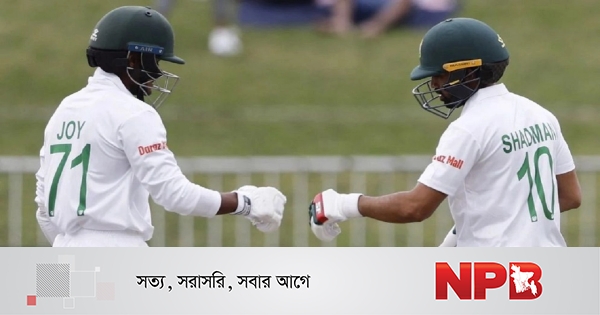 জবাবে ওপেনার সাদমান ইসলাম ও মাহমুদুল হাসান জয় শুরু থেকেই দেখিয়েছেন দারুণ নিয়ন্ত্রণ। ওয়ানডে ঘরানার ব্যাটিংয়ে তারা লাঞ্চের আগ পর্যন্ত তুলে ফেলেছেন ১০৯ রান। সাদমান ৫৮ এবং জয় ৫০ রানে অপরাজিত থেকে বিরতিতে যান।