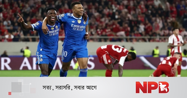 চ্যাম্পিয়নস লিগে রিয়াল মাদ্রিদ আবারও ত্রাতা হয়ে উঠলেন কিলিয়ান এমবাপ্পের জোড়ায়। অ্যাথেন্সে অলিম্পিয়াকোসের বিপক্ষে ৪-৩ ব্যবধানে জয় নিশ্চিত করেছেন তিনি, যার মধ্যে সাত মিনিটের মধ্যে হ্যাটট্রিকও রয়েছে।