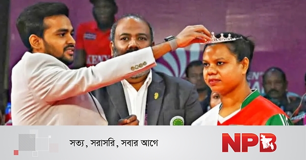 বাংলাদেশ যুব ও ক্রীড়া উপদেষ্টা আসিফ মাহমুদ সজীব ভূঁইয়া, বাংলাদেশ-চাইনিজ তাইপে সেমিফাইনাল শুরুর আগে রূপালীর মাথায় মুকুট পরিয়ে দেন।