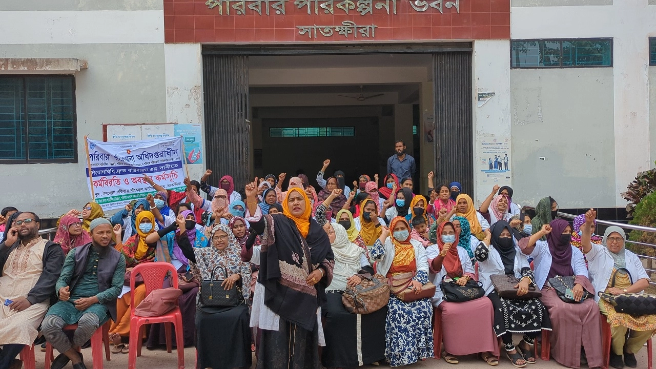 ৫ দফা দাবিতে সাতক্ষীরায় পরিবার পরিকল্পনা কর্মীদের অবস্থান