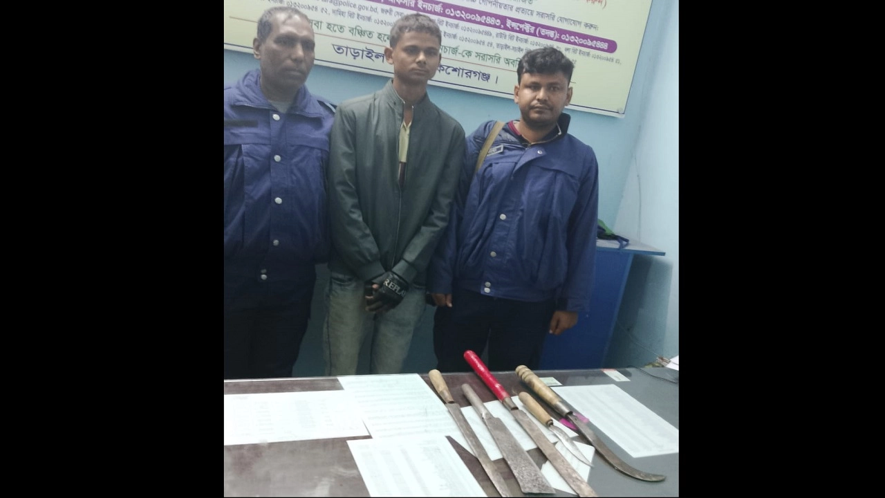তাড়াইলে যৌথবাহিনীর অভিযানে দেশীয় অস্ত্রসহ কিশোর আটক