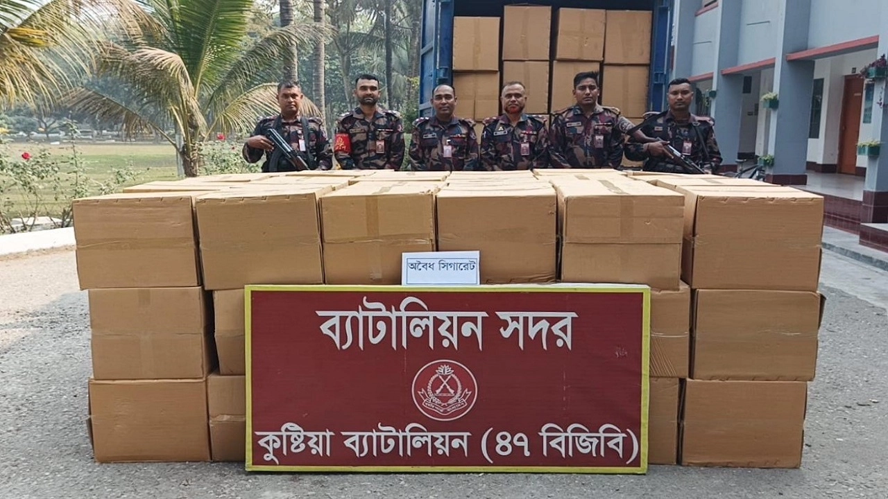 কুষ্টিয়ায় ৯২ হাজার প্যাকেট অবৈধ সিগারেট ও ২৩ কেজি গাঁজা উদ্ধার করেছে বর্ডার গার্ড বাংলাদেশ (৪৭ বিজিবি)। উদ্ধারকৃত এসব সিগারেট ও গাঁজার আনুমানিক মূল্য ১ কোটি ২২ লাখ ৫০০ টাকা। বুধবার(১২