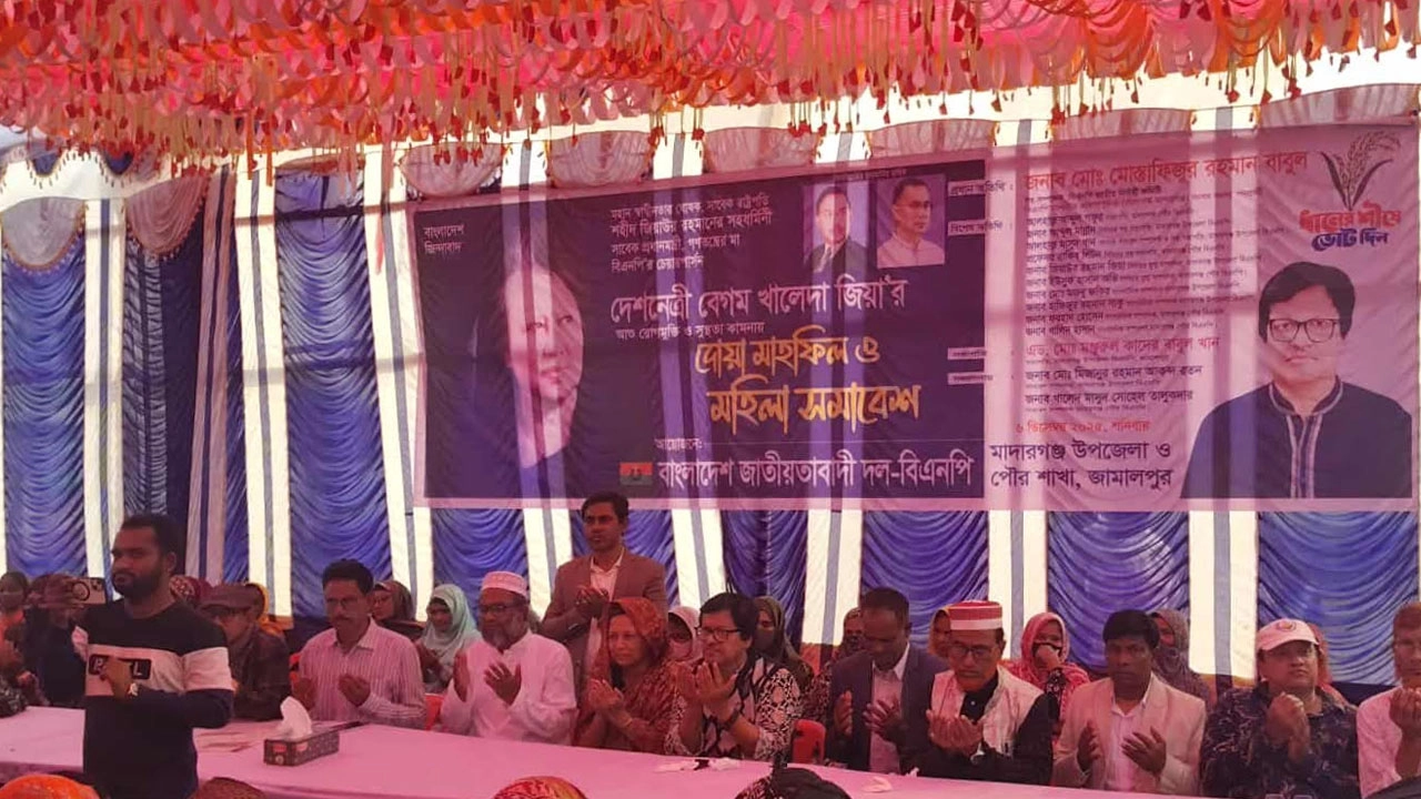 বিএনপি চেয়ারপার্সন ও সাবেক প্রধানমন্ত্রী বেগম খালেদা জিয়ার দ্রুত সুস্থতা কামনায় জামালপুরের মাদারগঞ্জে দোয়া মাহফিল ও মহিলা সমাবেশ অনুষ্ঠিত হয়েছে। শনিবার দুপুরে বালিজুড়ী এস এম ফাজিল ডিগ্রি মাদ্রাসা মাঠে উপজেলা ও