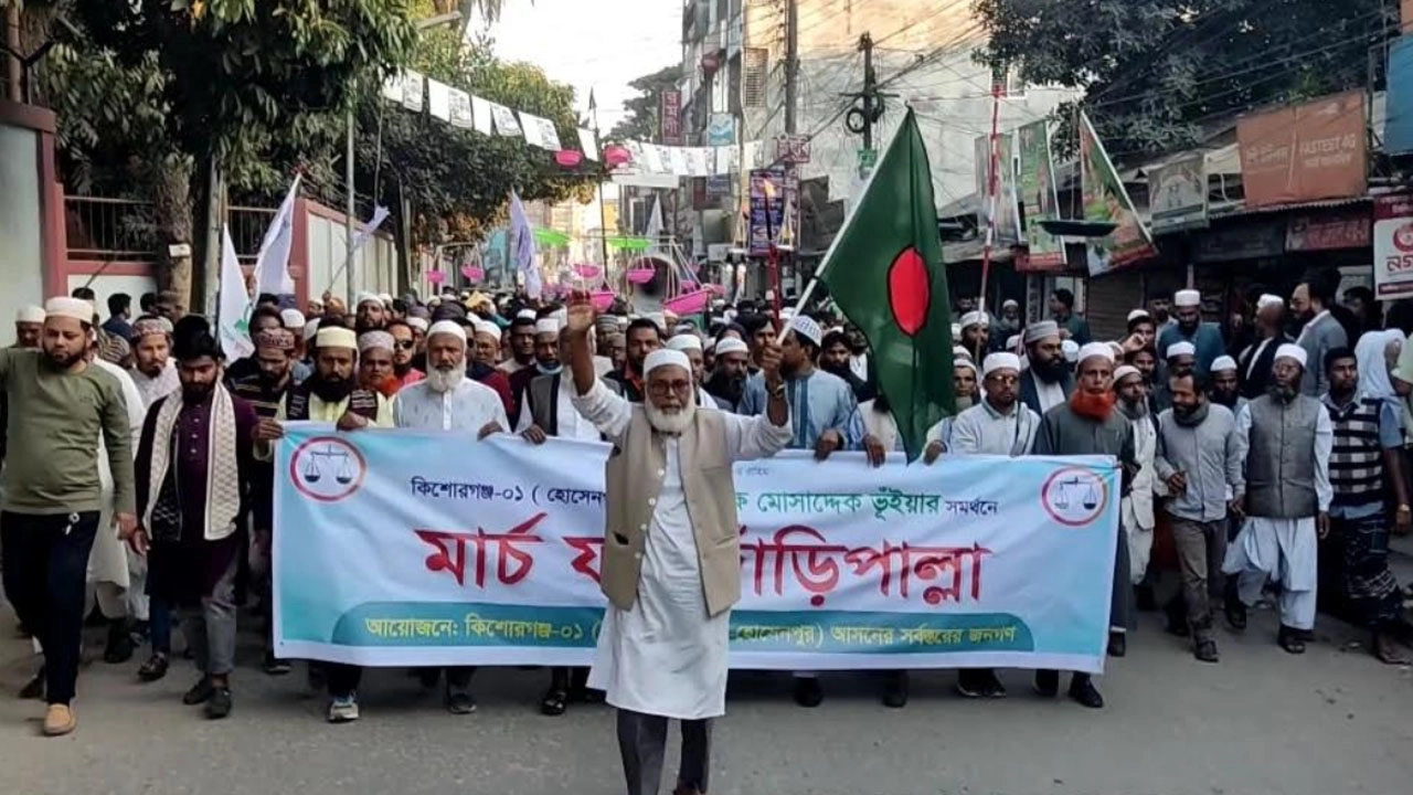 কিশোরগঞ্জ-১ (সদর–হোসেনপুর) আসনে বাংলাদেশ জামায়াতে ইসলামী মনোনীত এমপি প্রার্থী অধ্যক্ষ মোসাদ্দেক আলী ভূঁইয়ার সমর্থনে অনুষ্ঠিত হয়েছ “মার্চ ফর দাঁড়িপাল্লা” কর্মসূচি। হাজারো নেতা-কর্মী ও সমর্থকের উপস্থিতিতে বুধবার (১০ ডিসেম্বর) বিকেলে পুরো শহর