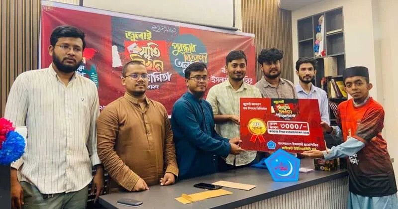 বাংলাদেশ ইসলামী ছাত্রশিবির, প্রাইভেট ইউনিভার্সিটি পূর্ব শাখার উদ্যোগে “জুলাই বিপ্লব” স্মরণে এবং সংগঠনের ঘোষিত ৩৬ দিনের কর্মসূচির অংশ হিসেবে আয়োজিত “জুলাই স্মৃতি লিখন প্রতিযোগিতা ২০২৫”-এর পুরস্কার বিতরণ অনুষ্ঠান অনুষ্ঠিত হয়েছে।