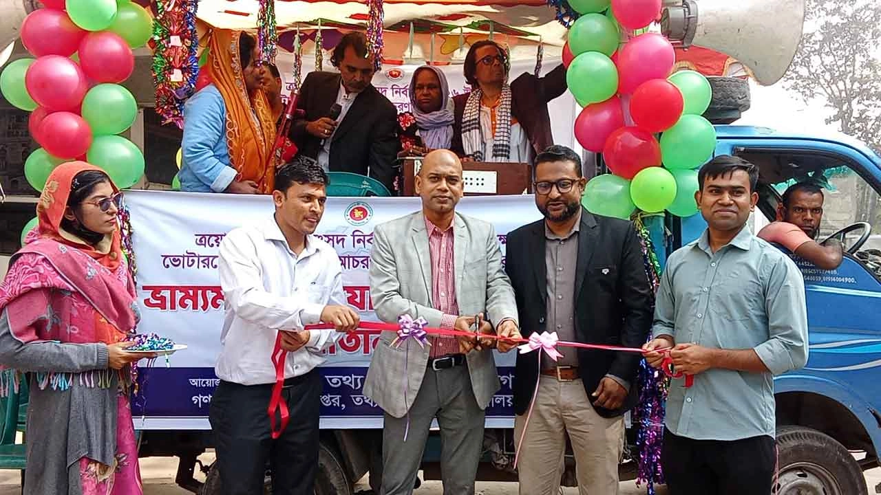 নারায়ণগঞ্জে ভোটারদের উদ্বুদ্ধকরণে ভ্রাম্যমাণ ট্রাকযোগে সংগীত পরিবেশন