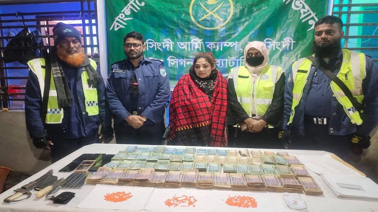 নরসিংদীর সদর উপজেলায় বিপুল পরিমাণ ইয়াবা ট্যাবলেট, মাদক বিক্রির নগদ অর্থ ও দেশীয় অস্ত্রসহ এক চিহ্নিত নারী মাদক কারবারিকে আটক করেছে যৌথবাহিনী। বুধবার (২৮ জানুয়ারি) সকালে বিষয়টি নিশ্চিত করেন নরসিংদীর অতিরিক্ত
