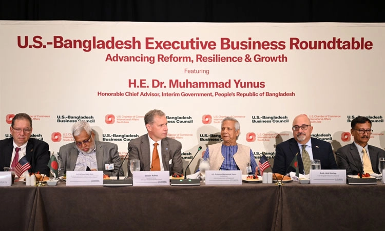 নিউইয়র্কে অনুষ্ঠিত যুক্তরাষ্ট্র-বাংলাদেশ এক্সিকিউটিভ বিজনেস গোলটেবিল বৈঠকে প্রধান উপদেষ্টা অধ্যাপক মুহাম্মদ ইউনূস মার্কিন ব্যবসায়ীদের বাংলাদেশে আরও বিনিয়োগে আগ্রহী হওয়ার আহ্বান জানিয়েছেন।