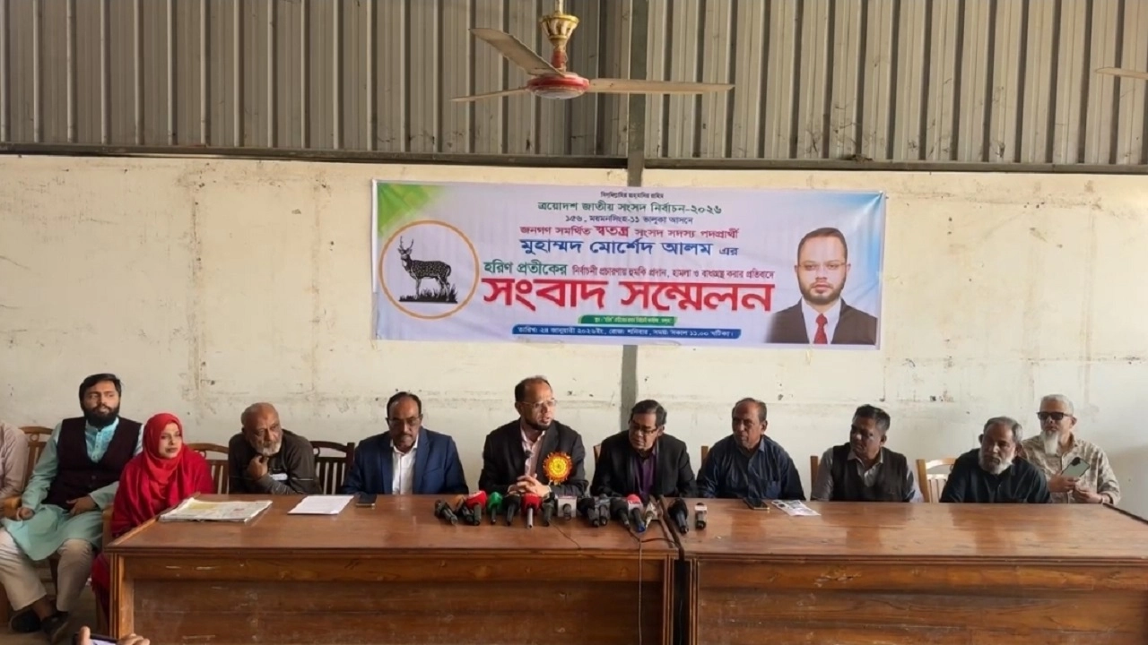 ত্রায়দশ জাতীয় সংসদ নির্বাচনে নির্বাচনী প্রচারণা কাজে বাধা, হামলা, ভাঙচুর ও অগ্নিসংযোগের অভিযোগ এনে সংবাদ সম্মেলন করেছেন ময়মনসিংহ-১১ (ভালুকা) সংসদীয় আসনে স্বতন্ত্র প্রার্থী মুহাম্মদ মোর্শেদ আলম। সোমবার (২৬ জানুয়ারি) বিকালে ভালুকা