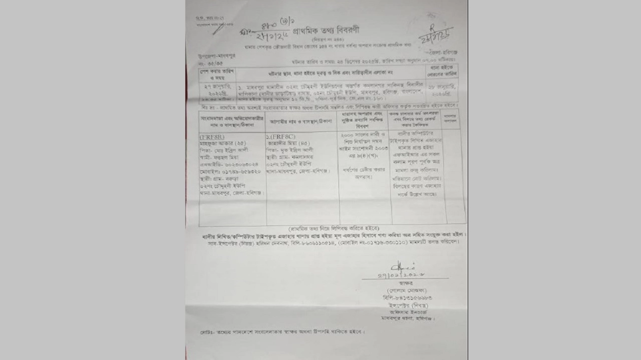 হবিগঞ্জের মাধবপুরে এক প্রবাসীর স্ত্রীকে ধর্ষণচেষ্টার অভিযোগে চৌমুহনী ইউনিয়ন বিএনপির সাংগঠনিক সম্পাদক জাহাঙ্গীর আলমের বিরুদ্ধে মামলা দায়ের করা হয়েছে। ভুক্তভোগী নারী মাহফুজা আক্তার নুসরাতের বিরুদ্ধে পাল্ট টাকা পাওনার প্রতারণার মামলা