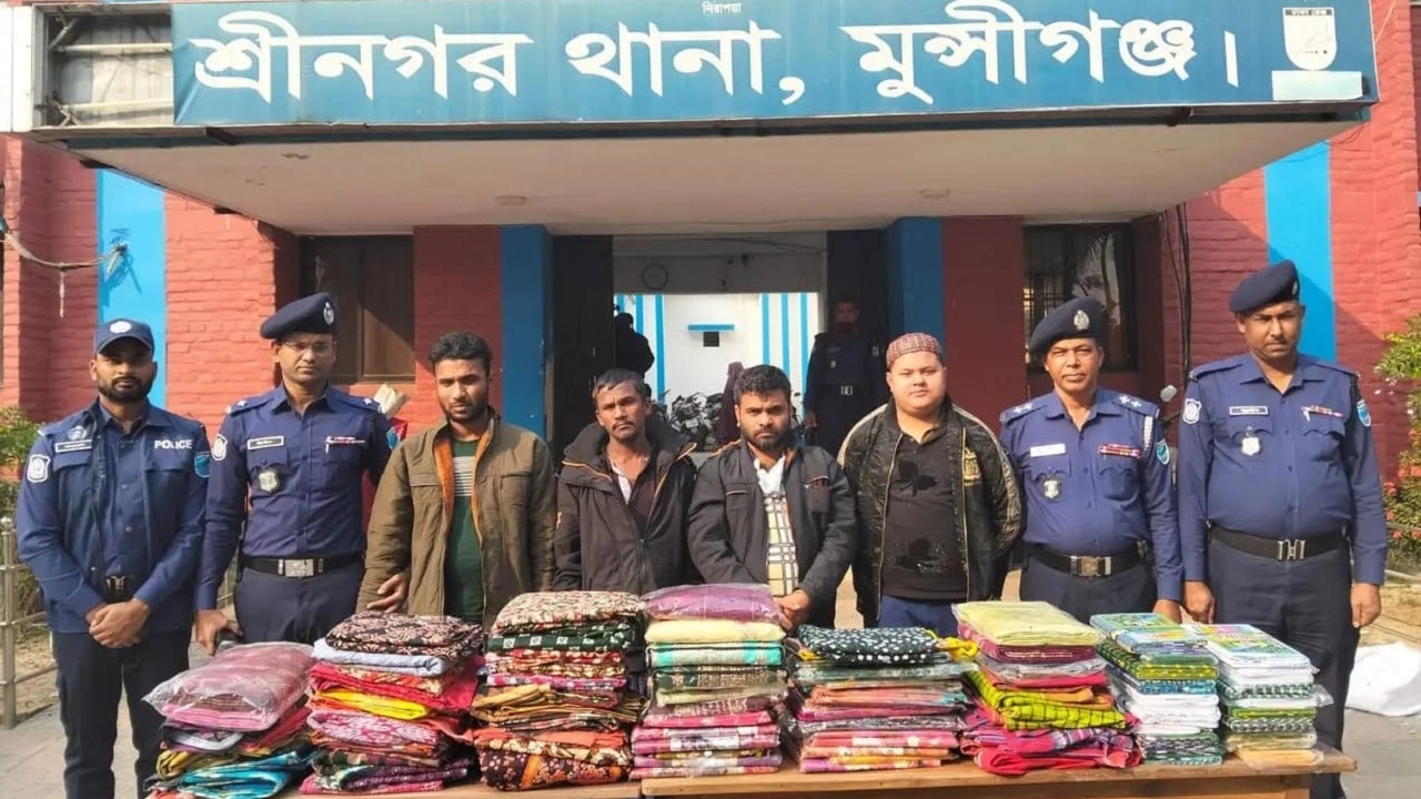 মুন্সীগঞ্জের শ্রীনগরে নৈশপ্রহরীদের বেঁধে কাপড়ের দোকানে দুর্ধর্ষ ডাকাতির ঘটনায় আন্তঃজেলা ডাকাত দলের চার সদস্যকে গ্রেপ্তার করেছে পুলিশ। এ সময় লুণ্ঠিত মালামাল ও ডাকাতিতে ব্যবহৃত একটি পিকআপ ভ্যান উদ্ধার করা হয়েছে। বুধবার