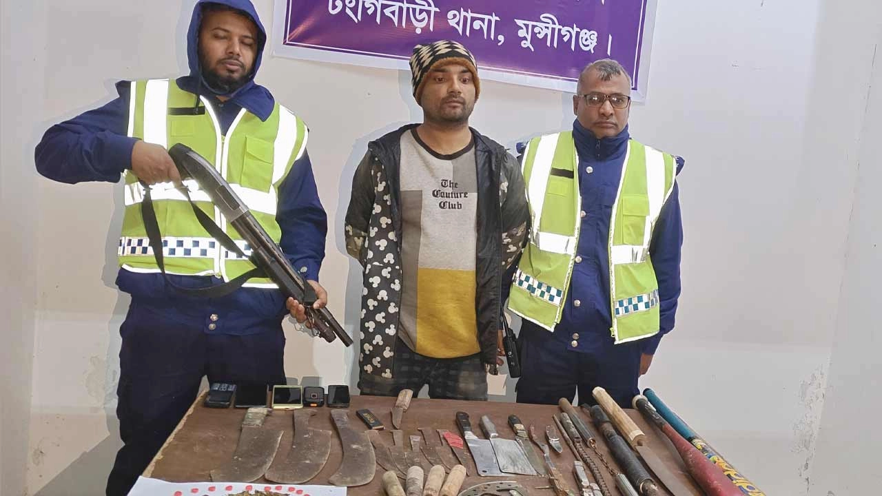 মুন্সীগঞ্জে দেশীয় অস্ত্র ও গাঁজাসহ গ্রেপ্তার ১