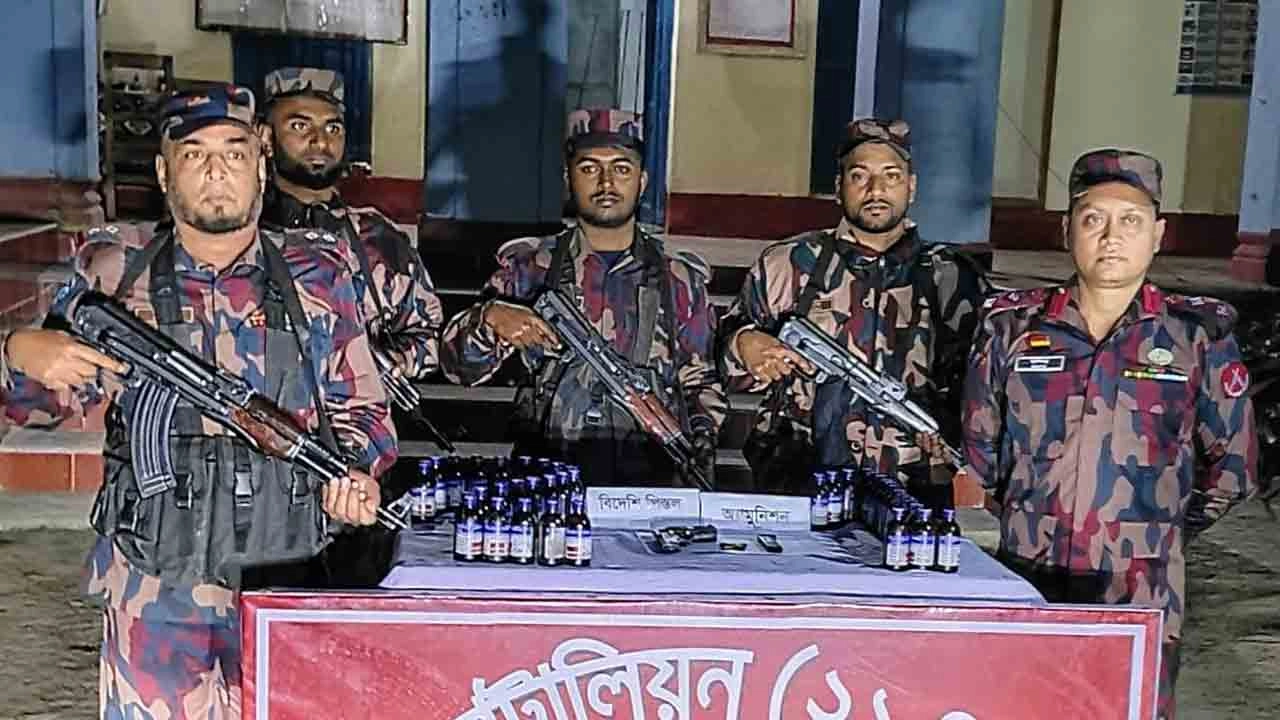 যশোরের শার্শা উপজেলার কায়বা সীমান্ত এলাকায় বর্ডার গার্ড বাংলাদেশ (বিজিবি) সদস্যদের বিশেষ অভিযানে একটি বিদেশি পিস্তল, একটি ম্যাগাজিন, ৫ রাউন্ড গুলি এবং ৪০ বোতল ভারতীয় এস্কার্প সিরাপ উদ্ধার করা হয়েছে। উদ্ধারকৃত