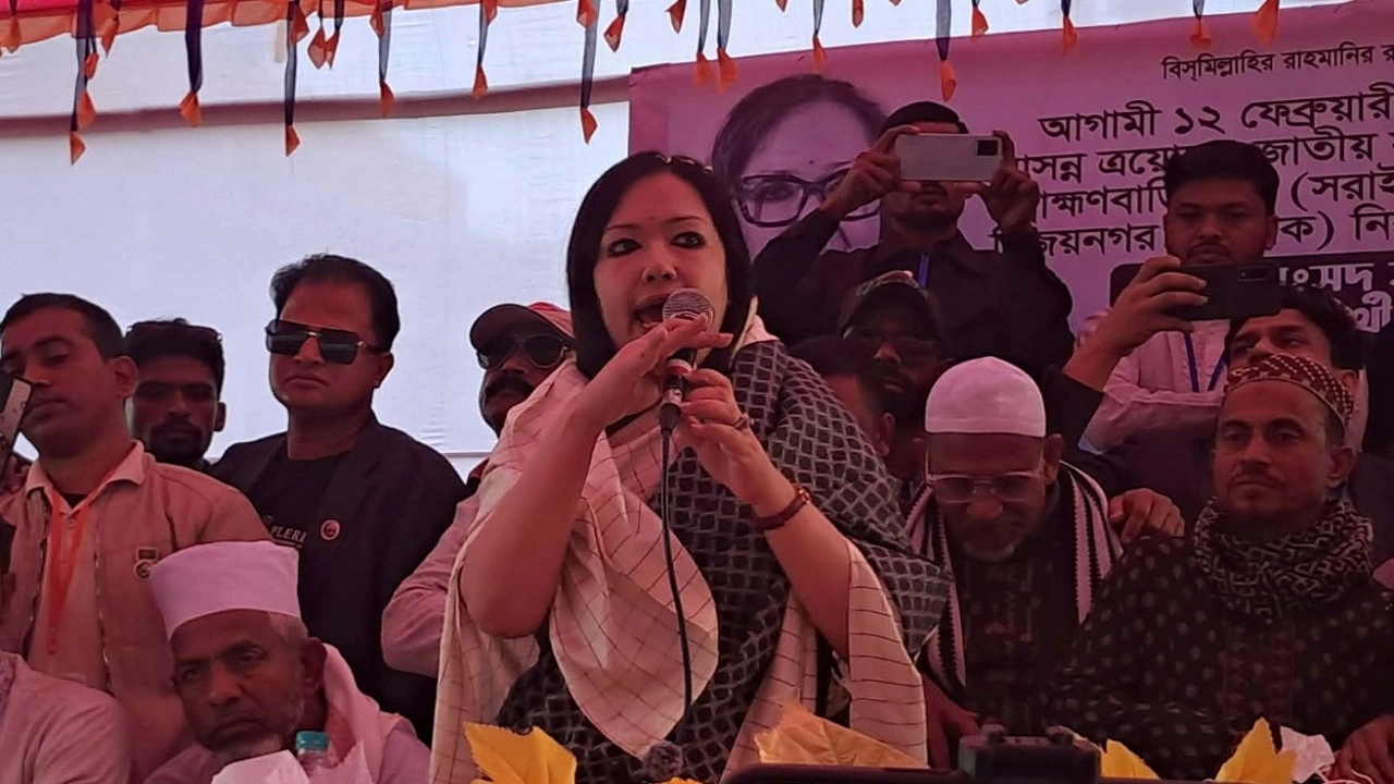 ব্রাহ্মণবাড়িয়া-২ (সরাইল, আশুগঞ্জ ও বিজয়নগরের একাংশ) আসনের স্বতন্ত্র প্রার্থী ব্যারিস্টার রুমিন ফারহানা শেষ গণমিছিলে অংশ নিয়ে ভোটারদের উদ্দেশে উড়ন্ত চুমু ছুড়ে দিয়েছেন। রোববার (৮ ফেব্রুয়ারি) বিকেলে সরাইল উপজেলার বিভিন্ন সড়কে আয়োজিত