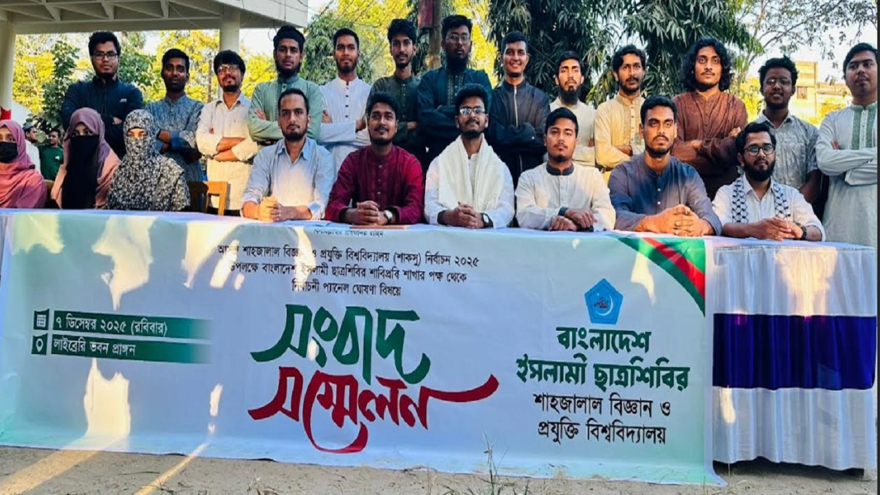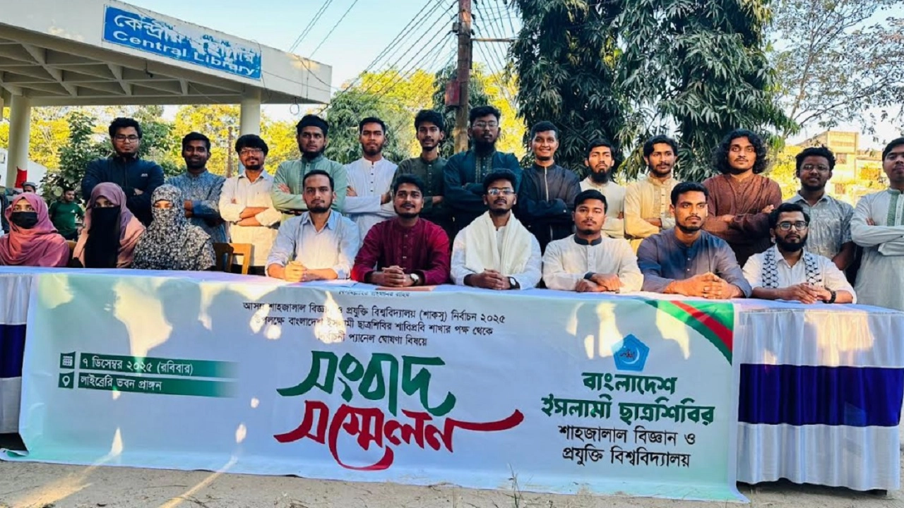 শাহজালাল বিজ্ঞান ও প্রযুক্তি বিশ্ববিদ্যালয় কেন্দ্রীয় ছাত্র সংসদ (শাকসু) নির্বাচনকে সামনে রেখে 'দুর্বার সাস্টিয়ান ঐক্য' প্যানেল ঘোষণা করেছে বাংলাদেশ ইসলামী ছাত্রশিবির। প্যানেলে ভিপি পদে লড়বেন ইংরেজি বিভাগের শিক্ষার্থী দেলোয়ার হাসান শিশির