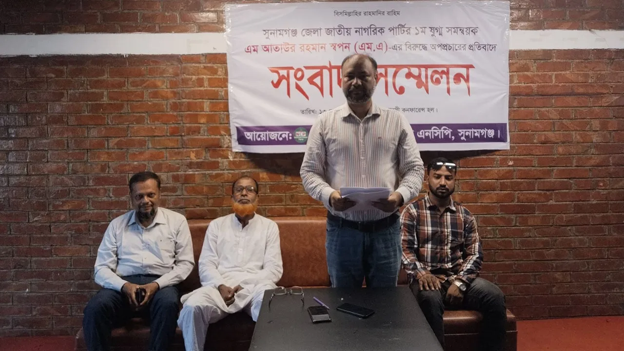 সুনামগঞ্জে অপপ্রচারের প্রতিবাদে এনসিপি নেতার সংবাদ সম্মেলন