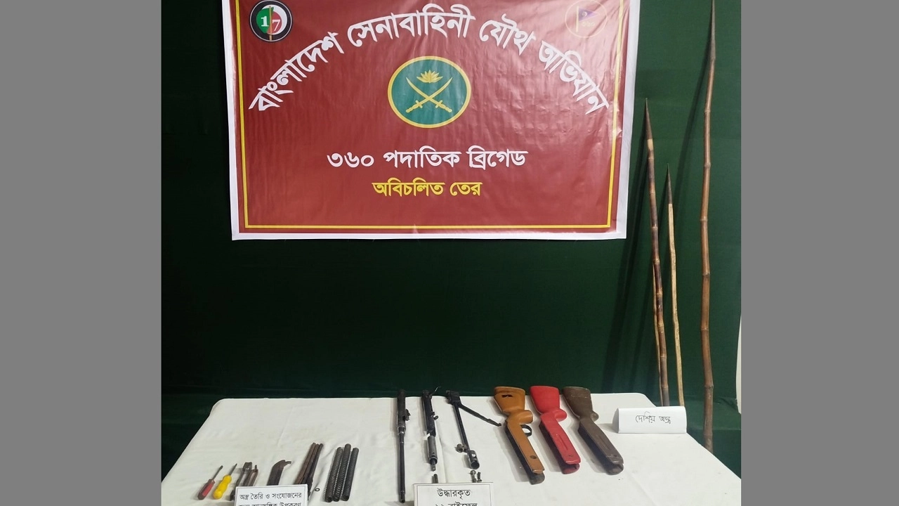 সেনাবাহিনীর অভিযানে আগ্নেয়াস্ত্র ও বিস্ফোরক উদ্ধার, গ্রেপ্তার ৮