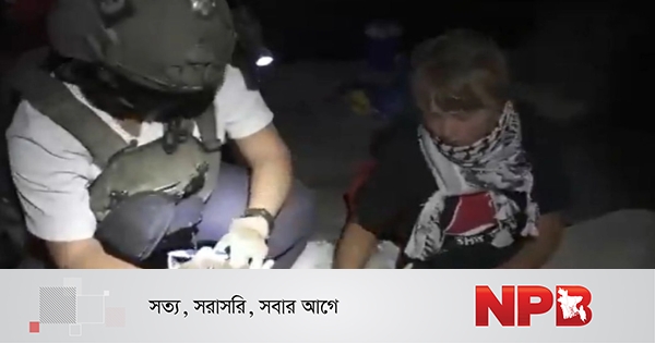 বুধবার (১ অক্টোবর) রাত ২টার দিকে প্রকাশিত ইসরায়েলি পররাষ্ট্র মন্ত্রণালয়ের একটি ভিডিওতে দেখা যায়, থুনবার্গকে সৈন্যদের পাহারায় বন্দরে নিয়ে যাওয়া হচ্ছে।