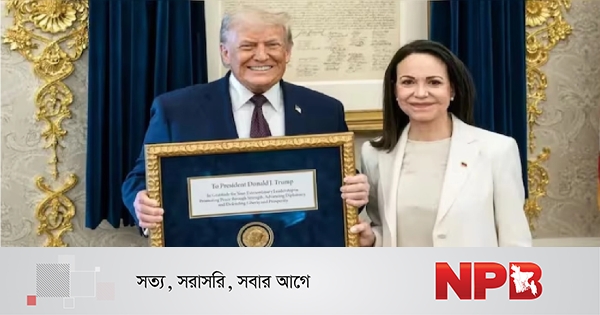 ভেনেজুয়েলার বিরোধী নেত্রী মারিয়া কোরিনা মাচাদো যুক্তরাষ্ট্রের প্রেসিডেন্ট ডোনাল্ড ট্রাম্পকে তার প্রাপ্ত নোবেল শান্তি পুরস্কারের পদক উপহার দিয়েছেন।